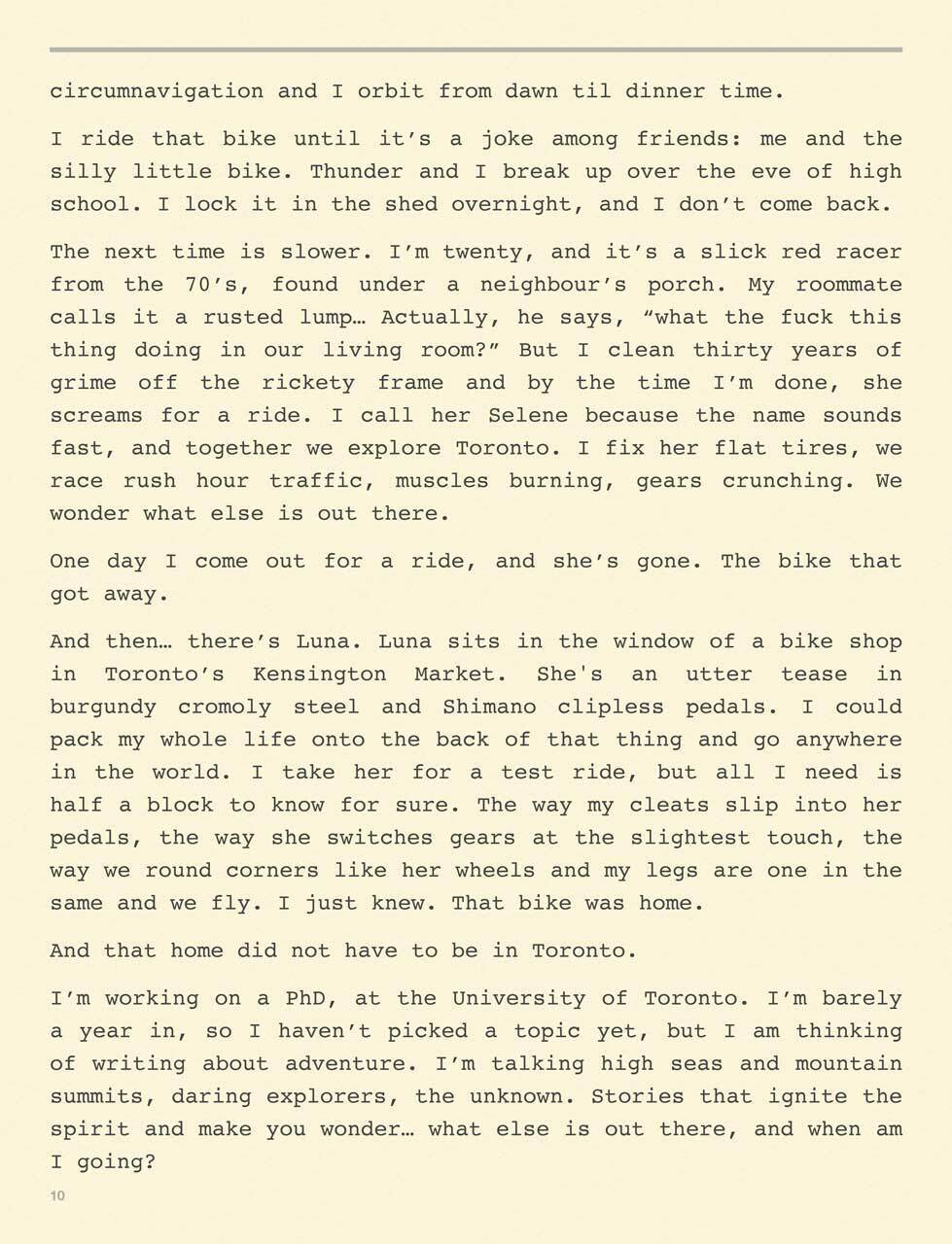 - "A funny, heartfelt adventure that's equal parts classic road trip story (but on two wheels) and feminist ode to cycling." (Samantha Edwards, NOW Magazine)